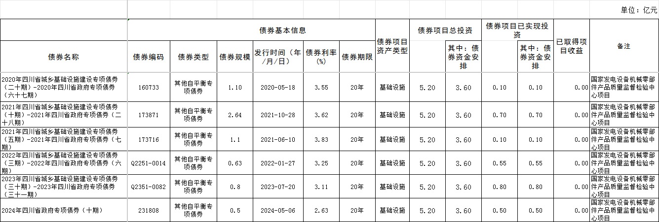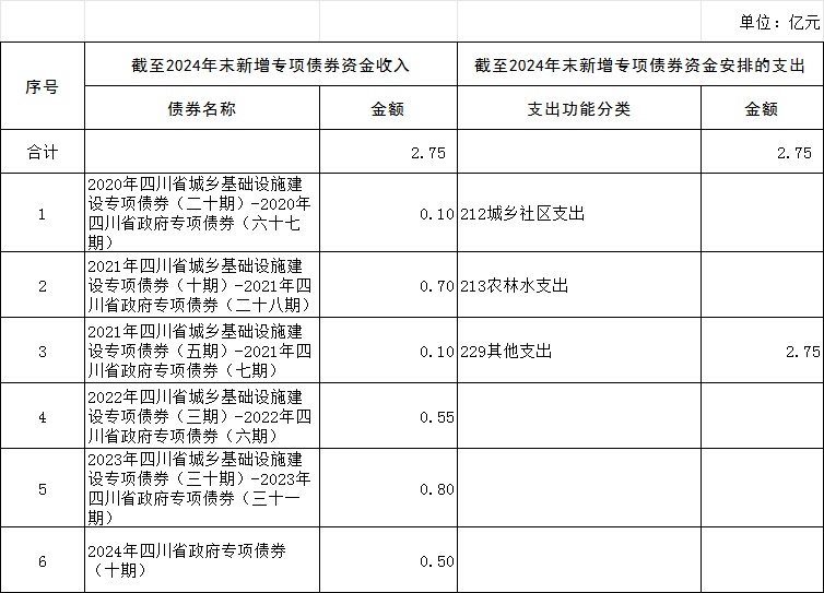截至2024年末新增地方政府专项债券情况表